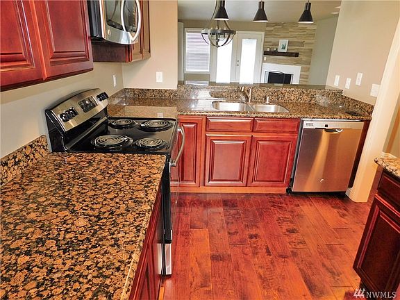 Beautifully updated & spacious 2 Bed 2.5 Ba Condo, Approx. 1140 Sq Ft, Close to Boeing & Walter Hall Golf Course, Beautiful Cherry Cabinets, New SS Appliances, Granite Counters in Kitchen & Bathrooms, Gorgeous Hardwood Floors, New Carpet, New Paint, Warm & Inviting, Vaulted Ceilings, Skylights, Large Windows-Lots of Natural Light, Cozy Fireplace, New Surround, New Blinds, Closet Organizers, Stackable Washer & Dryer, Good Sized Balcony with additional Storage, Large Bedrooms, Gated Community.