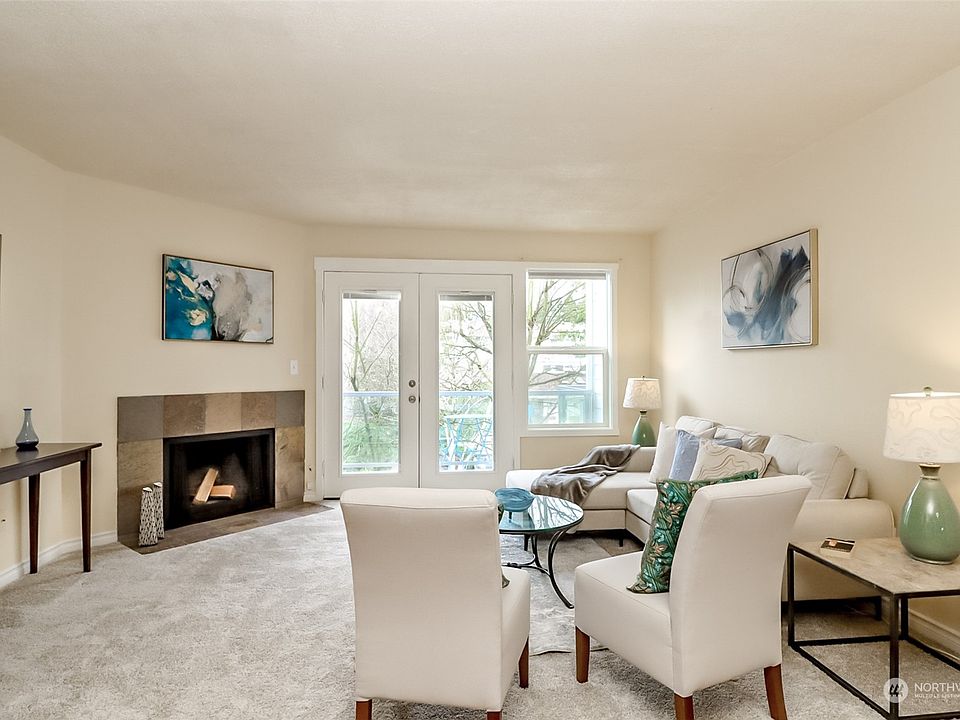 Spacious top-floor 2 story condo in the heart of Everett! Ideally located across the street from Walter E Hall Park w/an easy commute to Boeing & Paine Field Airport. Vaulted ceilings and skylights flood this move in ready home w/plenty of natural light. Kitchen features granite countertops, hardwood floors, solid wood cabinets & stainless steel appliances. Relax by the wood burning fireplace or outside on the private balcony overlooking the peaceful common area gardens. Other features include: NEW carpet, in-unit W&D, ample storage, and 2 dedicated parking spaces! Pet-friendly & no-rental cap! Located in a gated community along public transit and close to freeways, shopping, dining & golf! A great price for this fabulous investment!