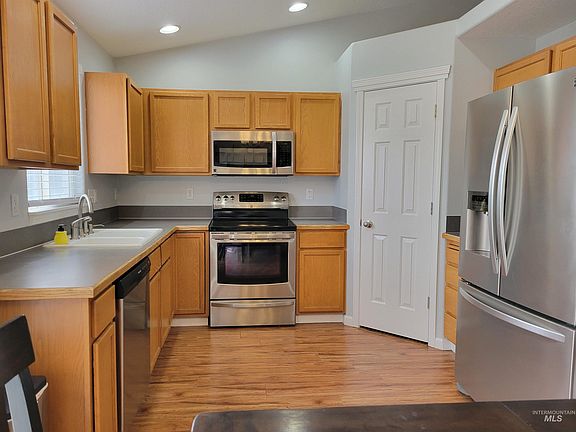 This home is Cute! Great 3 bedrooms, 2 bath home with 3 car garage. Easy keeper no paint, vinyl siding, underground sprinklers with mature landscaping, fenced back yard, extended patio and a storage shed. Inside you will enter into a living room with vaulted ceilings a bay style front window and decorator shelf in the vault to decorate super cute year round. The kitchen comes with all stainless steel appliances and seller is leaving the washer and dryer. Bring you things and just move in and start enjoying your new home for Christmas. If you are a first time home buyer, Idaho Housing just rolled out their new program for you. If you are just looking for something that is easy to keep up with but has great storage available, this 3 car garage attached home is just right for your storage needs. The Heating and Cooling unit on this house is new in 2021. There is a lot to love about this home. There is no HOA dues in this neighborhood, you just pay for irrigation to water your lawn.