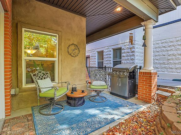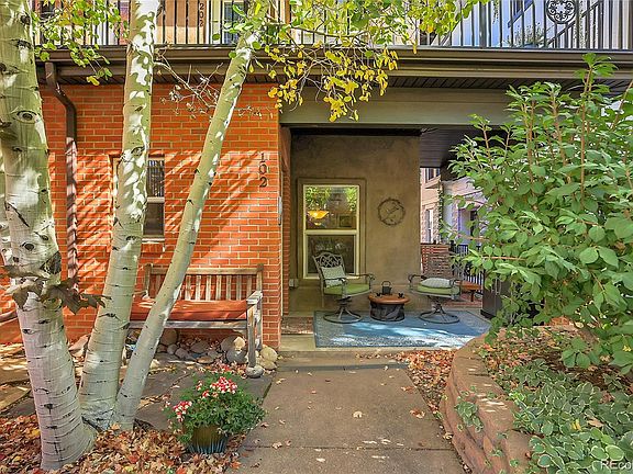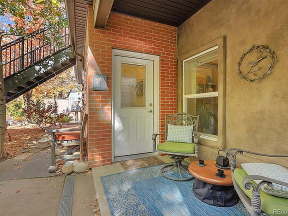 Discover the perfect blend of historic charm and modern elegance in this stunning condo, located in the heart of Golden. Immerse yourself in the convenience and culture of this historic town by easily accessing museums, Clear Creek, outdoor activities, nearby trailheads, shopping, dining, and entertainment out the front door. Originally built in 1904 and fully renovated in 2006, the condo combines rustic character with contemporary sophistication featuring exposed brick walls, textured flooring, high ceilings, full-size windows, custom craftsmanship, and a refinement that frames a spacious, open layout. From the private, ground-level entrance, the foyer greets you with tile flooring and a coat closet to shed layers. Adjacently the dining room is accentuated with classic lighting fixtures, and lots of natural light, providing a great space for meals. Seamlessly flow into the living room defined by exposed brick that adds a texture of warmth and encourages relaxation and conversation. The kitchen showcases granite countertops, modern appliances, ample storage space, and custom lighting sure to please the at-home chef. The primary bedroom has an adjoining sitting area that is useful for reading, arts/crafts, and is lined with windows offering plentiful light. An en-suite full bathroom is highlighted by a classically designed vanity and tiled floor and shower. Returning down the hallway a second bedroom functions as an office space with built-in shelving and desktop, a multi-functional space meeting your specific needs. Also from the hall is the ¾ bathroom, perfect for guests, and the in-unit laundry features a newer washer/ dryer. The included 1-car detached garage, a unique amenity in the area, combined with the designated storage room on the lower level grants adequate space for all your outdoor gear and parking! Discover a cohesive convergence of timeless character and modern interior design in this ideally located condo, offering a lifestyle of unmatched quality!