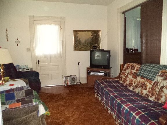 Covered front porch, 1st floor laundry room and 1/2 bath, full bath and two bedrooms upstairs, first floor family room being used as a bedroom. Detached garage and super sized lot.