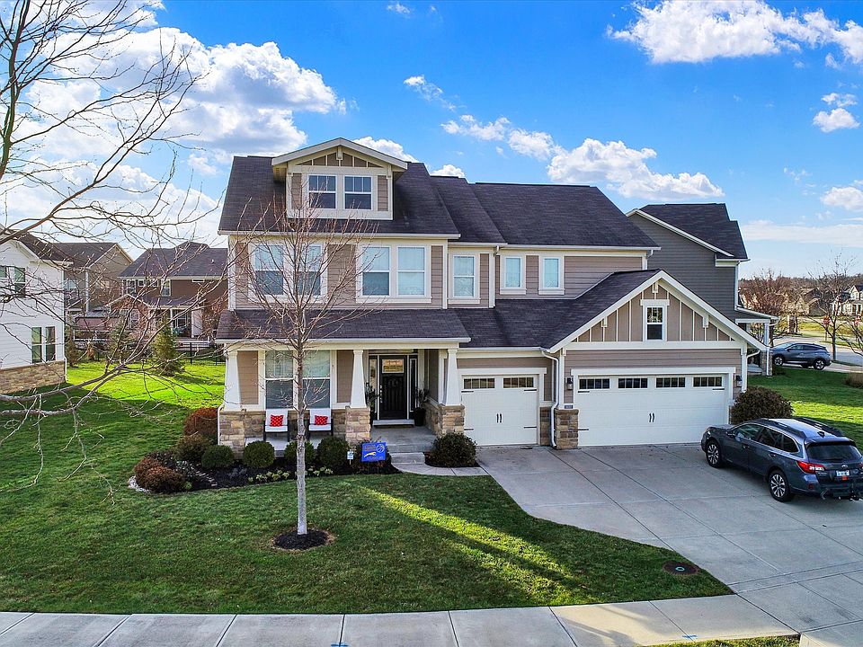 This meticulously maintained East Carmel home offers the perfect blend of location, comfort, and style. The open floor plan boasts 9' ceilings creating a bright and inviting atmosphere. The home is bathed in natural light, highlighting the durable vinyl plank floors and custom blinds. The kitchen features a walk-in pantry, a spacious granite island with a tile kick-plate surround, and ample storage. Enter through the 3-car garage into the mudroom, complete with a built-in coat and boot bench. The convenient upstairs laundry room can be accessed from both the master suite and the hallway. The master suite offers dual vanities, a walk-in shower, and a walk-in closet. The upstairs loft provides an extra living space allowing you time to finish the basement now or later. With a full bath rough-in, recessed lighting, and an egress window, the unfinished basement can quickly be transformed into third living space, a home theater, or a custom gym. Enjoy relaxing at the end of the day on your covered front porch, great for viewing passers-by and even the Conner Prairie fireworks. The backyard features a custom sandstone paver patio, a covered lanai porch, and privacy trees, as well as a huge side yard. The convenient running and biking trail offers easy, connected access to Prairie Trace elementary school and the rest of Carmel! Come see what this home has to offer!