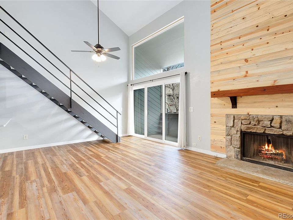Beautiful remodel!! Welcome to this inviting and spacious condo nestled conveniently across the street from Cherry Creek Reservoir. Boasting 2 bedrooms plus a loft and a bonus room adaptable for an office or non-conforming bedroom, this home offers versatility and comfort. Step inside to discover a newly remodeled kitchen featuring modern cabinets, quartz countertops, farmhouse sink and a stylish mosaic backsplash. The addition of stainless steel appliances adds a touch of elegance, while the inclusion of a washer and dryer ensures convenience. Entertain guests in the cozy ambiance of the living area, complete with a fireplace accented by a floor-to-ceiling wood surround. New Low E Windows, New LVP flooring and fresh interior paint enhance the home's appeal. The spacious primary suite boasts a walk-in closet, offering ample storage space and a private vanity that connects to the full bath. Updated bathrooms, newer windows, furnace, and A/C contribute to the property's overall comfort and functionality.  Outside, a delightful balcony awaits, providing the perfect spot to savor outdoor living. Conveniently located just across the road from Cherry Creek Reservoir and Trail. With Cherry Creek schools nearby and easy access to highways 470 and 225, as well as shopping destinations, this condo offers a blend of convenience and luxury. Don't miss the opportunity to make this your new home sweet home.