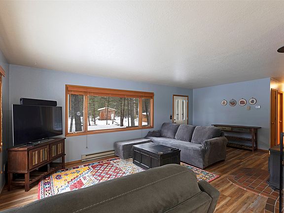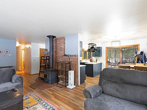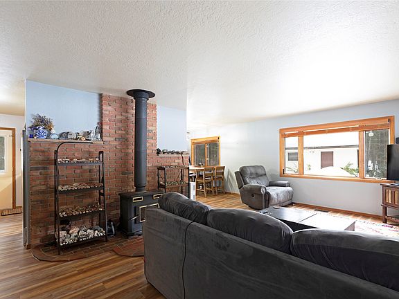 Nestled on a nicely treed acre lot in Turah, this delightful single-level home grants easy access to nature's delights—trails, public land, fishing spots, and the nearby I-90 corridor. Constructed in 1984, this welcoming abode features a primary suite with ensuite 3/4 bath, two generously sized bedrooms, a full bath, a cozy living area with a wood stove, laundry room & formal dining area. The updated kitchen shines with modern appliances, complemented by a detached double car garage for ample storage. Recent renovations include new flooring throughout, refrigerator, dishwasher, water heater, and gas furnace, blending comfort with contemporary flair. Step onto the expansive rear deck overlooking the arboraceous backyard, ideal for gatherings or quiet reflection. Enjoy the speed of rural living all while being a short commute to the bustling Missoula downtown at 14150 Hampton Drive. To schedule your private showing, contact Bethany Taylor at 406-396-0704 or your real estate professional.
