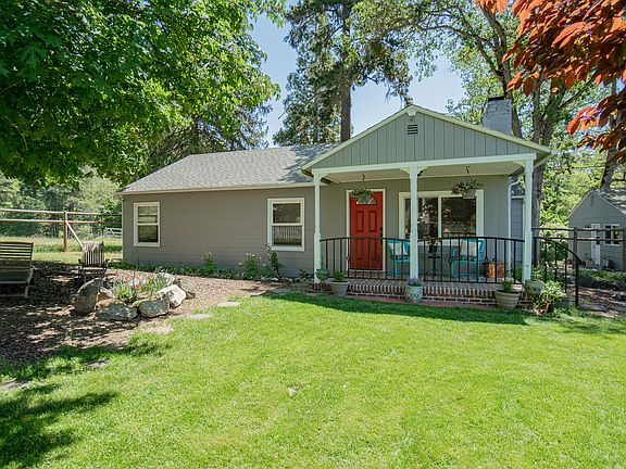 Situated in the beautiful Applegate Valley, this incredible property spans nearly 4 acres and holds a remarkable hidden gem. The main house offers 3 bedrooms and 1 bath, while nearby, a delightful studio with 1 bath, kitchen, and garage awaits. Adding to the appeal are an oversized 2-car garage and an impressive 1,500 SqFt commercial-grade metal shop. The property also features a whimsical Stuga playhouse and a charming he-shed. Surrounded by breathtaking views of mountains, meadows, the serene Humbug creek, and a fragrant lavender field, the setting is truly idyllic. Recent upgrades have enhanced the main house, studio, sundeck, and metal shop with thoughtful improvements. The original 36x40 old barn, with its timeless allure, sturdy structure, and versatility, provides an excellent space for livestock or extra storage.