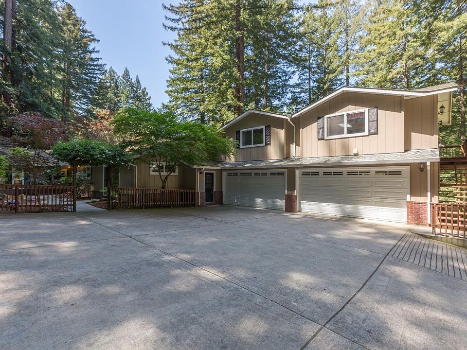 fantastic peaceful retreat set in the middle of a majestic redwood forest*private and secluded just minutes away to the freeway/coast*hardwood floors throughout*recently remodeled kitchen with custom cabinets, granite countertops, stainless steel appliances*three pellet stoves*pane windows*extensive decks perfect for entertaining*sprinkler system*automatic generator*4 car garage*set off the road*bright and sunny*minutes from multiple open space preserves and hiking trails*bonus room and bedroom that could be used as in-law suite*