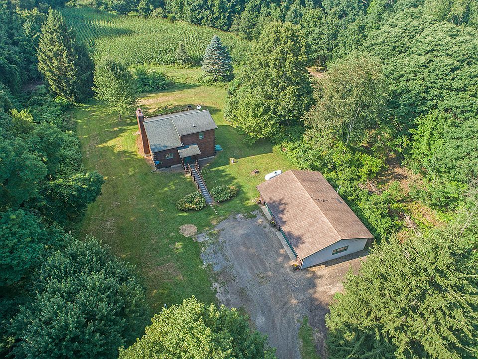 MAGESTIC SETTING NESTLED IN THE HEART OF HEAVY WOODS, SITTING 1/4 MILE FROM THE ROAD OFFERING IDYLLIC VIEWS & ULIMATE PRIVACY! This custom hand crafted 2-3 bedroom, 2 bath log home combines rustic tradition w/modern living. Robust architecture amongst soaring ceilings, hardwood floors & a wood burning stone fireplace highlight the living room that shares an open floor plan to the kitchen. Main floor bedroom, full bath & an additional room that could be another bedroom or home office. The 2nd floor features a suite w/full bath & loft area. Full basement offers great storage, rec rm plus a 3 car garage to store all of your toys. Dreamy deck overlooks fields & scenic country landscapes as far as you can see! Home shares a driveway with 14148 Peckham Rd. Taxes currently based on 0% homestead
