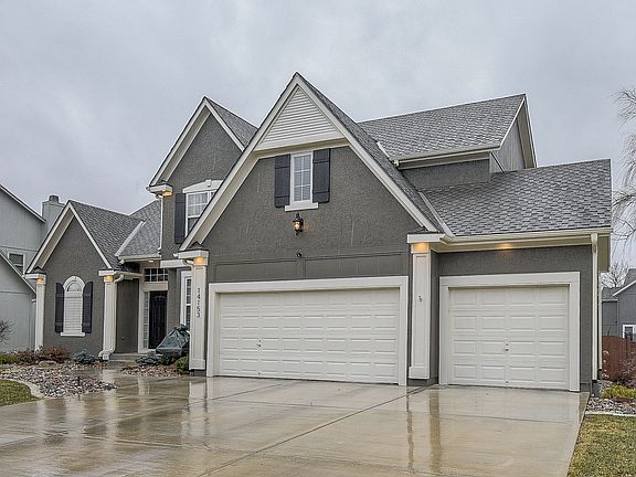 Beautiful 1.5 story in highly desired Blue Valley School District. Crown molding throughout the main level. Main level master bedroom/bath and laundry room. Open kitchen with stainless steel appliances, granite counters, tiled back splash, hardwood floors and a cozy hearth room with fireplace. A staircase with designer carpet & iron spindles leads to a loft area with skylights that overlooks the kitchen, along with three bedrooms, a Jack & Jill bath and a private bath. The lower level leads to a professionally finished daylight basement that includes a full kitchen with granite counters, full bath and a 5th (non-conforming) bedroom/office. Additional features of LL include surround sound wired, fireplace and water softener. New driveway, walkway, stoop and exterior paint in 2015. Exterior lighting added to all sides of house in 2016. New roof, gutters and down spouts in 2018. Subdivision includes a community pool, picnic area and play area. This listing is a For Sale By Owner. We will work with Buyer Agents.