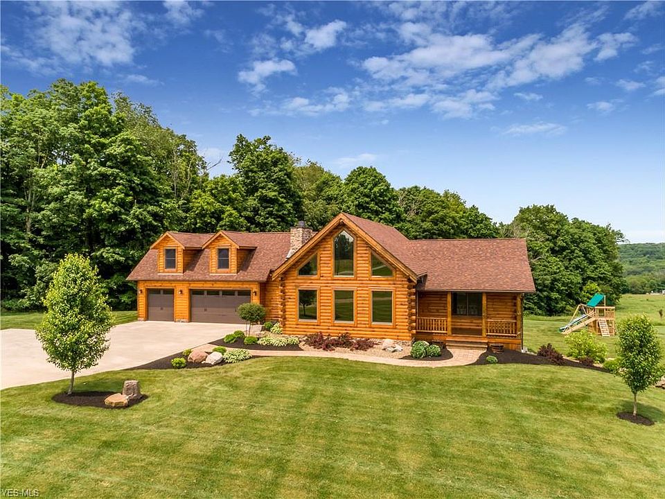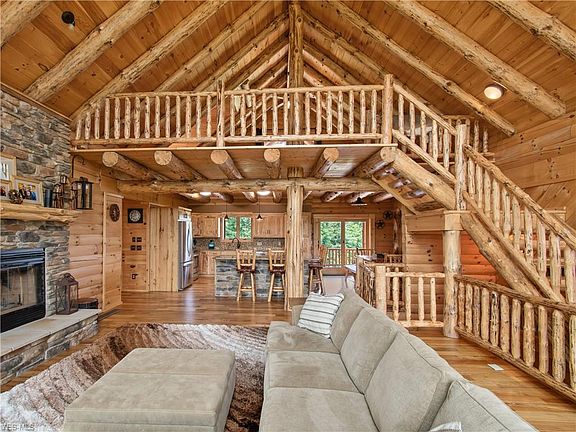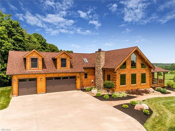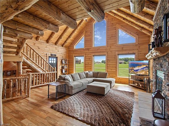 Welcome home to this stunning custom-built log home in North Lawrence. Upon entering, a spacious great room with wood burning fireplace and cathedral ceilings can be found. The open floor plan makes it perfect for family gatherings and entertaining. The dream kitchen has granite countertops, hickory cabinetry, and stainless-steel appliances. Home is complete with a first-floor master that is spacious, private, and has a walk in closet and full bathroom. Along with the first-floor master bedroom, thereâs added convenience with a first-floor laundry and half bath for guests, this is single floor living at its finest! Heading upstairs gives you bonus living space, including an impressive loft that overlooks the great room. Office and bonus room over the garage adds a retreat for any visitors joining you in your scenic cabin getaway! If this wasnât enough, walkout basement is finished with large family room, 2 bedrooms, full bathroom, and tons of storage space. Head through the walk out to your patio that is an entertainerâs dream. Backyard not only has a recently added patio with fire pit, thereâs also a covered deck, and landscaping that will take your breath away. Home was built in 2013 and upgraded with Geothermal heating and cooling. Donât miss out on your one owner, perfectly cared for dream cabin on 8.2 scenic acres. This is your once in a lifetime chance to own this home! Schedule your showing today!