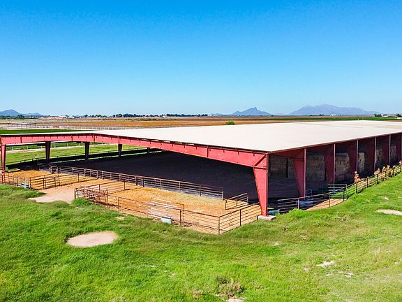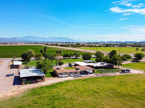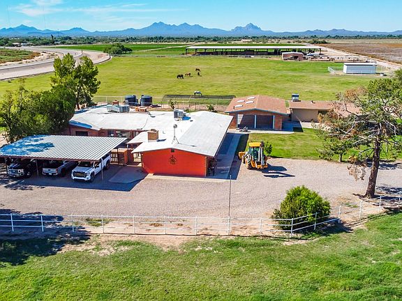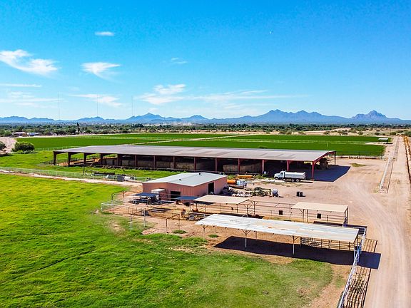 50 Acre Farm/Ranch with 330'x 150' covered roping arena/hay shed, main house, guest house (w/2 bedrooms, 1 bath & large office area), several storage units, 6 fenced pastures, 11 corrals, 2 new upgraded 2500 gallon wells (1 year ago), 2 septics (house & guest house), crop irrigation canals, irrigation grandfathered groundwater rights, 80'x60' & 60'x45' shop areas, 24'x30' RV storage area. Main ranch house has two 60 gal hot water tanks.Recently erected very large outdoor ramada w/full electric - between ranch house & guest house. Great for parties, receptions, sports watching, dances, etc. Superb location off of I-10 and Marana Rd. Rare opportunity to own this spectacular property.