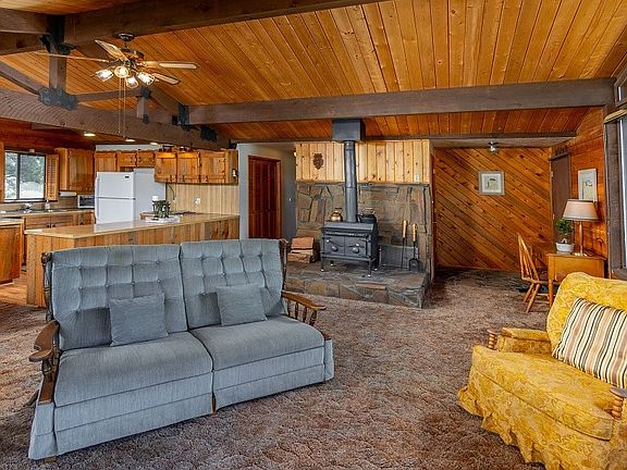 Wonderful Opportunity! Log home, with picture windows, to take in the beautiful Cascade Mt view. Features include two primary suites, vaulted ceilings, beautiful wood beams and a metal roof. Mini-split, ductless heat pump, provides you with economical heating and cooling. Garage is 624 Sq Ft, with overhead door. Just bring your personal items and some groceries. This property is ready for you to move-in and make yourself at home. Own this 2.03-acre parcel, consisting of two 1-acre lots, with plenty of room to build, whether it be an accessory building or another home. There are so many possibilities