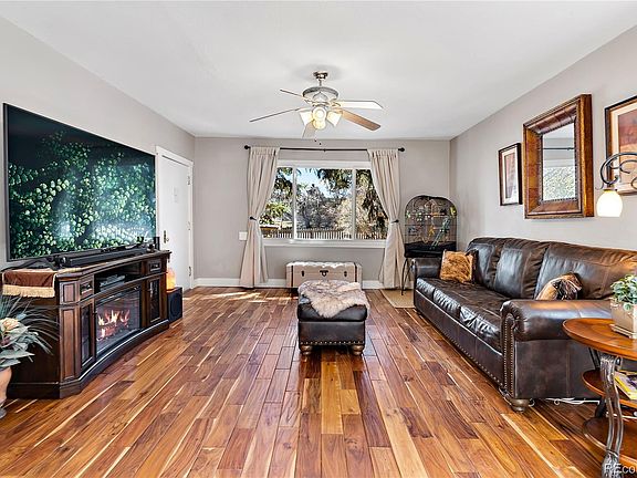 Welcome to your home in Golden. Enjoy an open-concept kitchen, dining and living space with gorgeous acacia hardwood floors. The living space has a triple window for natural light with mature trees outside for privacy. The sliding glass door in the dining area provides easy access for grilling and outdoor entertaining with a bonus exterior Dutch door! This u-shaped kitchen is open with ample storage, off the kitchen you have a laundry-mud room with an abundance of windows. The hallway offers a linen closet and substantial full bathroom with room for improvements! The primary bedroom is bright and airy with space for a king sized bed. A small secondary bedroom could be a great nursery or home office. If this cute house wasn’t enough then enjoy the bonus enclosed loft that could be a third bedroom, work out room, theater room, play room or home office. County records has this loft listed as a third bedroom. A welcoming front porch adorned with tongue and groove wood ceiling and wood posts plus views of Table mountain. Let the kids or dogs run and play in a yard that is completely fenced in. Store yard games or lawn equipment in the wooden shed. Have a BBQ in your side yard playing croquet, soccer or volleyball. Enjoy Colorful Colorado sunsets on the two tiered wood deck after a long day of outdoor fun. The oversized detached garage could potentially be converted to an ADU for passive income! Egg prices have you down? Behind the garage is a large chicken coop that needs some TLC. The exterior house, garage and shed are freshly painted plus a one year new swamp cooler. Live on a quiet street in a quaint house with a large fenced yard, many mature trees, Mountain View’s in the sought after Golden neighborhood of Fairmount in Unincorporated Jefferson County. Home sales in this location do not go on the market often so grab your opportunity to make this home yours! OPEN HOUSE Friday 4-6 PM and Sunday 1-4pm