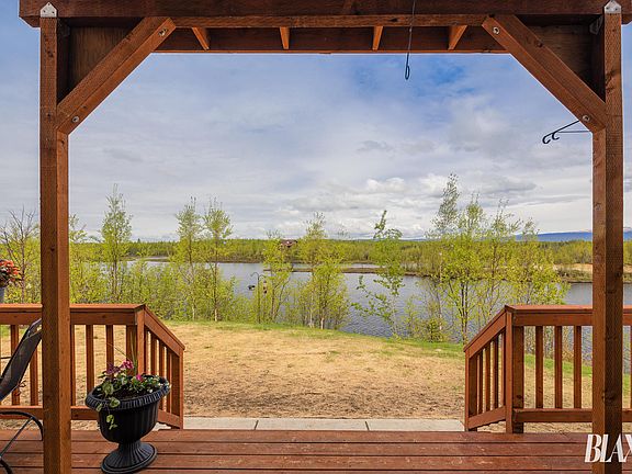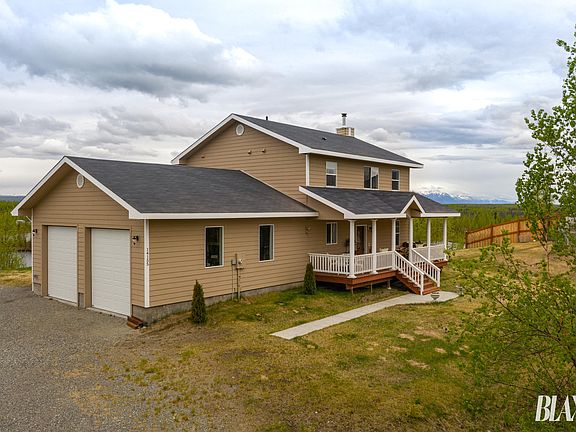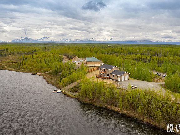 Beautiful 2 story home nestled on Lazy Lake with 180+ degree view! Catch a peek of Mt. McKinley on clear days with panoramic views of the surrounding mountains. Two lots being sold together for a total of 2 acres, and room to develop the second acre to suit your needs! Upgraded cabinetry, woodstove, rich laminate floors, massive decks, private owners ensuite w/ private deck and a massive garage!