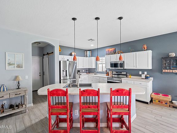 Charming single-story 4-bedroom, 2-bath home spanning 1,797 SQFT in the sought-after ''Sierra Verde'' community in Surprise. This home boasts an owned 7.74 KW SOLAR system for energy efficiency, north/south exposure. The popular ''Encanto'' floor plan showcases a spacious great room, large kitchen island, ample cabinet space, with walk-in pantry, plank tile flooring, fully remodeled bathrooms w/ walkin showers