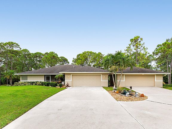 WELCOME HOME This gem is resting on a premium 1.15 acre lot and boasting 3 bedrooms, 483sqft theater/BONUS room, 2 full baths, detached 2 car garage, sparkling pool, upgrades throughout, 2018 roof, landscaping galore, superb location, quiet paved street and this beauty is very well maintained! ENTERING you will discover, a high and dry fully fenced lot, convenient double concrete driveway, koi pond and a screened in front porch that brings you inside where you are greeted by a soaring 13' ceiling, spacious foyer, great room, natural lighting and a remodeled kitchen that features; granite countertops, Whirlpool Gold appliance package, double pantries, bar and cozy 14' x 10' breakfast nook that overlooks the pool. PASSING THROUGH you will find tray ceilings, dynamite split (CLICK) floor plan, beautiful color palette, flat wall finish with rounded corners, under AC 9' x 6' laundry room with newer washer and dryer and hello elegant master suite boasting a pool view, tray ceiling, large walk-in closet, his and hers vanities, walk in shower, deluxe roman tub and private water closet. STEPPING OUTSIDE brings you into a private oasis... 29' x 30' lanai, expansive 34'x22 pool patio and loads of plush mature landscaping such as; royal palm, coconut palms, boganvilla, pineapple plants, gardenia, firecracker and pines. Simply, a perfect space for quiet time, cozy fires, family gatherings, entertaining and enjoying Florida living at its best. HELLO SAVINGS, PEACE OF MIND AND CONVENIENCE low annual homeowners insurance, high speed internet, not located in a flood zone, freshly painted exterior, detached 529sqft oversized two car garage many newer systems and no pond. LOCATION LOCATION LOCATION The Acreage is located in Palm Beach County, home to one of Florida's best public school systems and some of the country's most rigorous public magnet and private schools in the nation as recognized by U.S. New & World Report, the New York Times and sitting just a few miles away from the Palm Beach State College. And this beauty is superbly located just minutes to everything one could possibly desire; shopping and dining just around the corner and nine quaint parks with countless year-round outdoor activities such as; free concerts at the community amphitheater, play grounds and picnic areas with grill pavilions, fishing, skate and equestrian parks, fitness and equestrian trails, football, baseball and soccer fields, tennis, basketball, volleyball and racquetball courts and is located just minutes to everything one could possibly desire; Florida's Turnpike, I-95, Palm Beach international Airport, arts, entertainment, world class equestrian shows and facilities, beaches, theater, golf, business and economic development, education, green living and countless activities for all ages, Simply, the best of everything and your perfect Florida retreat. COME AND SEE WHY The Acreage is so sought after and take in the fresh country air and peaceful sounds of nature. Build a chicken coop, bring your toys, pets or just about anything your heart desires... The possibilities are endless and there is no HOA! Come and enjoy your life away from the hustle and bustle and your evenings gazing at the stars. Be sure to check out the VIP discounts on site! NOTE: The attached 2 car garage was converted to a theater/BONUS room. However, the garage door tracks are on site and a buyer could easily covert back.