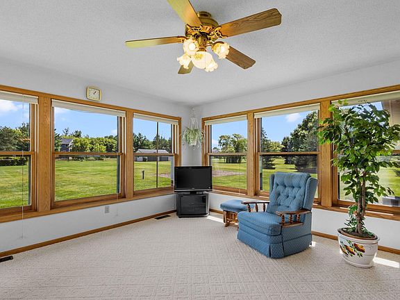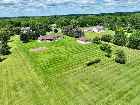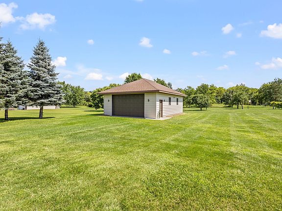 Immaculate one owner custom-built rambler on a serene 2+ acre lot. Escape the hustle and bustle and find peace and tranquility at home. The property features a detached 26'X34' garage with 220V electric and air compressor, along with an attached 25'X34' insulated, finished garage. Enjoy the patio overlooking a private backyard, surrounded by 14 mature pines, 8 stunning maples, and a variety of fruit trees including pear, apple, apricot, and grapevines. Inside, the 8'X8' laundry/mudroom leads to a bright east-facing porch/sunroom—perfect for morning coffee or unwinding at the end of the day. The spacious kitchen offers ample cabinetry, while the cozy living room features newer Andersen windows. The primary bedroom includes a walk-in closet and private bath. The lower level boasts a 48' amusement room with egress windows, a guest bedroom, a full bath, and a second fully equipped kitchen with appliances, plus a 13' storage room/workshop. This home is wrapped in solid steel, with a massive concrete driveway. Walking distance to Hanson Elementary and a short drive to Rogers Junior and High schools. Your search ends here—welcome home!