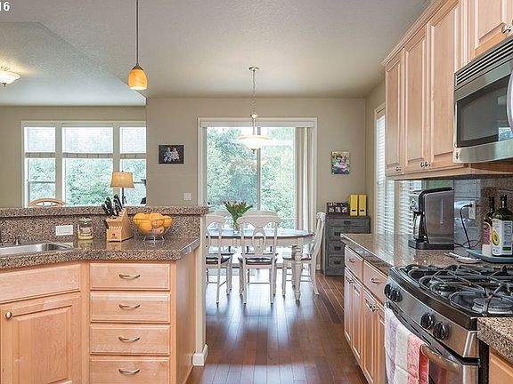 Immaculate Bethany home features 4 bedrooms, 2.1 baths, plus den and bonus room. Outstanding kitchen with hardwood floors, stainless steel appliances, granite, maple cabinets, raised eating bar, pendant lights, pantry and breakfast nook. Formal dining room with high ceilings, hardwood floors and butler's pantry. Inviting light and bright open family room with fireplace and wall of windows overlooking green space. Master retreat with walk in closet, tub, dual vanity sinks and shower, three additional spacious bedrooms, upstairs laundry room, and large bonus/media room. A/C, tranquil back yard with tiered deck. Excellent schools, close to walking trails, park,and Bethany center. Easy Commute to Nike, Intel and HWY 26.