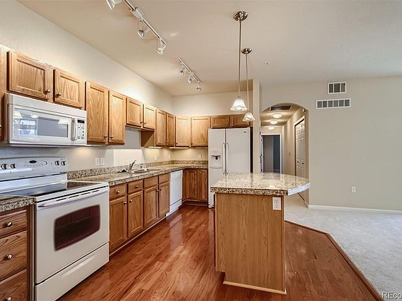 On The Broadlands Golf Course! New Carpet throughout and new paint! Great covered patio with views of the Greens. Kitchen has a pantry, tons of cabinets, an island, under cabinet lighting and pull outs in the island. Living room is large with tons of natural light, a gas fireplace and built ins. 3rd bedroom has double doors and could also be used as an office. Master bedroom is very big, lots of windows, views of the golf course, large walk in closet and a ceiling fan. Master bath has large tub, storage and double sinks. Whole unit has zero stairs, even in from the garage! The garage is a long tandem and has storage shelving. All Appliances stay including Washer, Dryer, Kitchen Refrigerator, Stove, Microwave and Freezer in garage. Art niche in hall and the unit has been very well maintained. Neighborhood has beautiful landscaping, a playground, pool and fitness center, lots of extra parking. Convenient to Boulder, Thornton, and I-25.