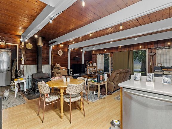 Private lakeNestled among dramatic mountainsCharacter-rich a-frame homeCozy atmosphereTraditional wood-burning stoveDetached shop