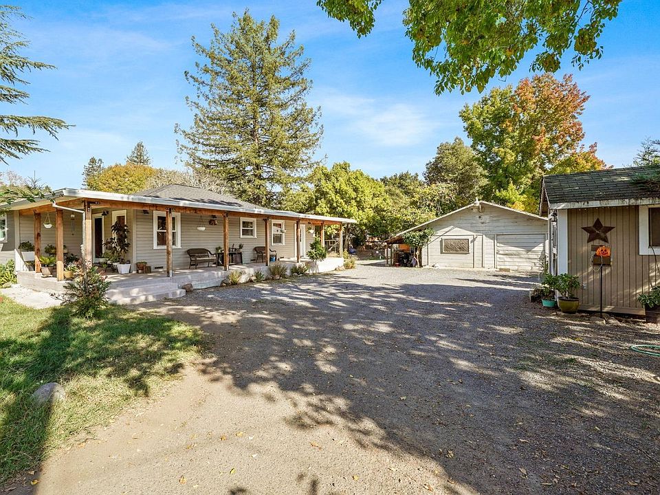 Located in one of West County's most desirable locations is this adorable single-level 3 bedroom, 2 bath farmhouse. This home has been tastefully remodeled with modern conveniences throughout. Upgrades include a newer roof, central heat and air, dual paned windows, remodeled bathrooms and kitchen, and new flooring throughout. Charming covered front porch and back deck off the primary bedroom allow for additional space to enjoy all that this property has to offer. There are 2 private wells and a newer septic system. Darling chicken coop, detached workshop/garage, plus room for an ADU, RV parking and so much more. The listing includes .27 acre adjoining lot at 1400 Laguna Road, totaling just over an acre of level usable land. The property is completely fenced with 2 separate gated entrances. Don't miss this chance to own a turnkey home surrounded by world renowned vineyards and orchards.