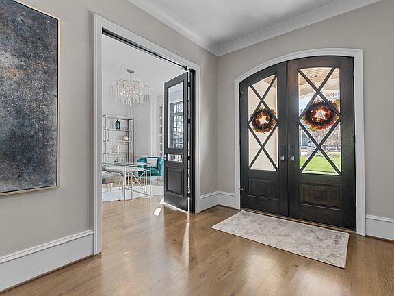 Welcome to this breathtaking estate in Avalaire, nestled in the heart of North Raleigh. Thoughtfully curated and masterfully appointed, this home exceeds every expectation for a residence of its caliber. From the moment you arrive, the flickering gas lanterns offer a warm preview of the elegance within. Step inside and experience a sense of space and serenity. The open floor plan is beautifully anchored by rich hardwood floors, intricate millwork, and coffered ceilings. The great room is truly awe-inspiring, especially when both sets of accordion patio doors are opened to seamlessly connect the interior to the covered porch, pool deck, and a backdrop of protected woodlands. A chef's dream, the kitchen is designed for both function and beauty. With dual oversized islands and top-of-the-line appliances including a 60-inch Wolf range and full-size Sub-Zero refrigerator and freezer, it's a space where culinary creativity knows no bounds. The adjoining dining area features a striking stone accent wall and a sleek linear fireplace, creating an inviting ambiance for everyday meals or special gatherings. Hidden just behind the dining area, a well-equipped bar awaits your next celebration. The primary suite is a tranquil retreat, complete with his-and-hers walk-in closets and a spa-inspired ensuite bathroom adorned with marble finishes, a soaking tub, and a separate glass-enclosed shower. For convenience, the laundry room is accessible directly from the primary closet as well as the hallway. Take the elevator to the upper level where a bonus room is perfect for movie nights or relaxation. Upstairs also offers four additional bedrooms, a second laundry room, and two spacious, climate-controlled storage rooms. Outdoor living is elevated to an art form. A heated saltwater infinity pool and integrated spa overlook private gardens and eight acres of preserved woodlands. The expansive covered porch with a stone fireplace and retractable phantom screens ensures comfort in every season. The patio includes dedicated dining and grilling areas, and the generous pool deck invites you to bask in the sun, gather around the gas fire pit, or simply unwind. A conveniently located changing room and half bath mean wet feet never need to cross the threshold. Sinnce this home is designed for effortless entertaining, the circular drive and porte-cochere lead to an open courtyard and four garage bays, ensuring ample parking for family and guests alike. With its perfect balance of sophistication and practicality, this estate offers an unparalleled lifestyle of comfort, luxury, and natural beauty.