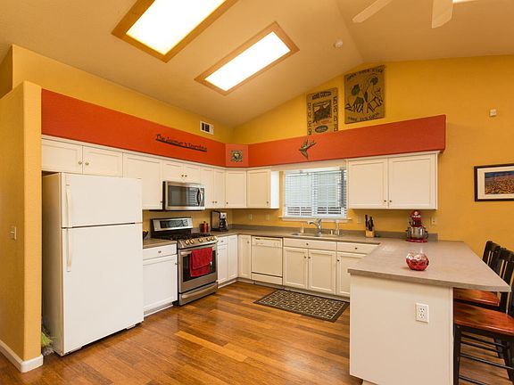 - Features: Appliances/Refrigerator, Flooring/Tile, Appliances/Microwave, Appliances/Range / Oven, Kitchen Features/Breakfast Bar, Garage Count/2 Car Garage, General/Ceiling Fan(s), Garage Description/Attached Garage, Heating Type/Forced Air, Flooring/Wall to Wall Carpet, Flooring/Hardwood, Heating - Fuel Type/Gas, General/Security System, Appliances/Dishwasher, Appliances/Garbage Disposal, Fencing/Partially Fenced, Exterior/Sidewalk, Exterior/Out Building, Exterior Living Space/Deck, Exterior/Sprinkler System, Interior/Cathedral Ceilings, General/Skylight