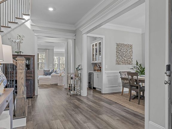 Don't just jump, LEAP on this immaculate W. Cary home with exquisite details inside and out! This nearly new 4 bedroom, 3.5 bath home is stunning in every way possible. Highlights include an open concept white kitchen with quartz countertops; living room with built-ins and surround sound; luxurious, downstairs primary bedroom retreat; butler's pantry; dedicated office; spacious loft; ample-sized secondary bedrooms; covered back patio; incredible outdoor entertaining patio perfect for a fire pit; fenced-in backyard; and carriage/golf cart garage ideal for a workshop or home gym. Backyard has a picturesque, tree-line view. A home like this only comes along every four years, so don't miss it!