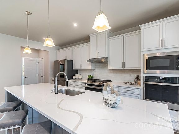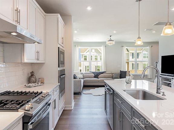 LOCATION and GREAT SCHOOLS! Like NEW Luxury townhome w/Modern design & a plethora of UPGRADES! End Unit makes it light & bright throughout! Amazing covered extended terrace. Interior features Hardwood stairs, & Luxury vinyl hardwood plank on main. Kitchen showcases Skyline 42-inch cabinets, Quartz counters, white subway tile backsplash, stainless steel appliances, GE Gas Cooktop, double ovens, smart feature wall oven, large island & an abundant of can lighting. Lower level offers recreational space/office & drop zone area. Wall paint beautiful SW City Loft. Convenient location w/easy access to I485 & I-85. Amenities include sidewalks, street lights, dog park & covered pavilion w/picnic benches. 2 car garage & ample storage options w/spacious closet space. Townhome faces Northeast. Fixture exclusions: EV CHARGER, all ceiling fans and light fixture in family room, & curtains from 2nd & 3rd bedrooms. To build new w/all these upgrades would be approximately 18K+ more than list price