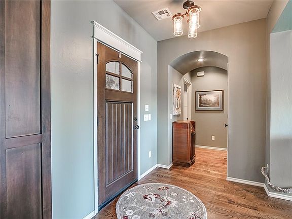 Unique Craftsman style home is priced to sell and customized to impress. Lovely home with extras you won't get with a standard new build. Two kitchen islands and one doubles as a rare Teppanyaki Hibachi Grill with imported Italian vent hood. Double convection ovens, 5 burner gas stove. Beautiful hard wood floors throughout. Impressive oil rubbed wood beams and upgraded trim. Easy maintenance salt water pool with tanning ledge, LED lights, and water feature is the perfect size. Extensive landscaping surround this corner lot home. Raised sprinkler heads conveniently water the Urban Garden. Attached third car garage is currently a heated and cooled craft room with epoxy floors but can easily fit a vehicle. 8-10 person storm shelter. Community lake with fishing, paddle boats and covered dock are less than 300 yards from home. Sellers out of pocket extras are the buyer's savings. Come see this beautiful home today. See attachment for a complete list of upgrades.