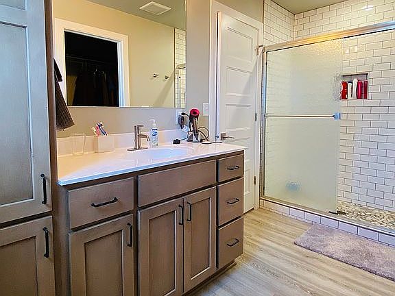 This beautiful two story home is located just north of Watford City, in the Stepping Stone Golf Course Community. This home has 1816 sq feet of living space, a heated, fully finished 3 car garage with hot and cold water and drain, a fenced yard, nice landscaping and underground sprinklers. Upon entering the home you are greeted with vaulted ceilings, a custom built in for coats and shoes, and a nice open entryway. The main level is where you will find the galley style kitchen, complete with quartz countertops, subway tile backsplash, and stainless steel appliances. The island comfortable seats 4. The dining room and living room are also on this level, along with a half bath. There is a large storage closet under the stairs. The sliding doors open to a covered patio which has a built in gas line for the grill. Upstairs you will find the master bedroom, complete with a subway tile walk in shower, a separate toilet room, and a large walk in closet. There is a laundry room with tile floors, and the washer and dryer stay. There are two more nice sized bedrooms, a full bath, and a fun living space for gaming or movie nights. The flooring in this area was updated to Coretec LVP this year. As an added bonus, all wall mounted TVs will stay in the home. There is a full house security system installed. Please contact us for a private showing, or to answer any questions.
