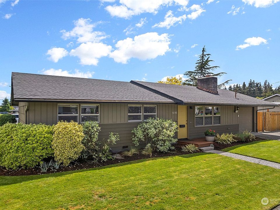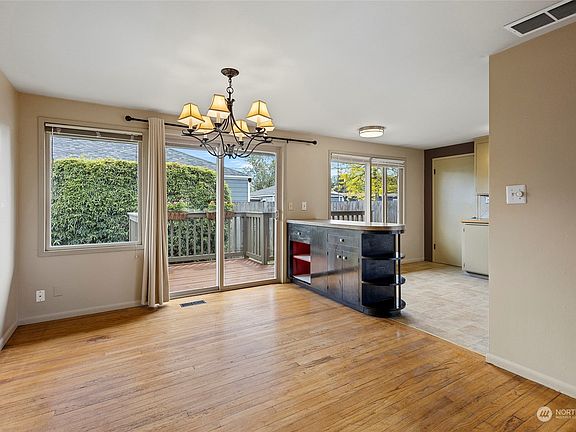 Charming, bright Mount Vernon mid-century rambler with beautiful original hardwood floors throughout, fresh interior paint, & stone surround wood burning fireplace! Kitchen features a moveable island for additional counter space & storage as well as a freestanding dishwasher. Large storage closets can be found throughout the home as well as in the full bathroom which also features a double sink, shower, & tub. Spend time sitting on your front deck or go out the back sliding glass door off the dining area to the welcoming fully fenced backyard with mature landscaping and both deck & patio for lounging and entertaining! Attached one car garage with storage, work space, and shop sink. Additional parking available alongside the garage as well!