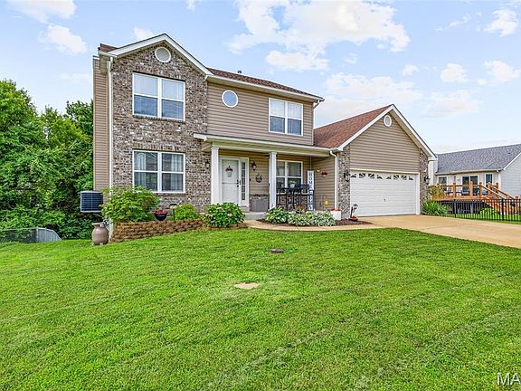 Wonderfully updated 4 Bedroom, 3.5 Bath two-story. You will be so impressed with the extra-large primary bedroom and an unbelievable bathroom with double sinks, lighted mirrors and whirlpool tub with separate shower. The other two bedrooms upstairs are nicely sized. The fourth cozy bedroom is located in the lower level with its own bath. They all have beautiful wood doors, ceiling fans and laminate flooring (except LL – carpet). The walkout LL also includes a spacious family room leading to patio and great yard backing to woods. The kitchen is a cook’s delight having a gorgeous granite island, LG black-stainless steel Smart appliances including stove, microwave, ceramic range and oven w/air fryer/convection. Also included is a double door pantry with so much room. Natural lighting fills the hearth room with main focal point being the massive brick woodburning fireplace. This room leads into a comfortable living room and not to mention, there is also a dining room for entertaining guests. All lighting and ceiling fans have been upgraded, and rooms painted in warm modern colors. Outside features a wood deck off the kitchen and a 2-car garage and front door having Wi-Fi openers. Quiet, but growing neighborhood convenient to the heart of Festus. Great, great home for a growing family. Do not miss this one!