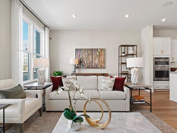 This beautiful 2-car garage townhome boasts a modern open floorplan that is great for entertaining. You'll find an impressive and functional gourmet kitchen with oversized island that offers plenty of room for the home chef and food enthusiast alike. The adjacent family room, dining room and rear deck offer the perfect space for gatherings. The upper level has a spacious primary suite with walk-in closet, two secondary bedrooms, and hall bathroom. On the lower level there is an additional bedroom suite with full bath for overnight guests or family members visiting from out of town. You will love the convenience of having a grocery store, restaurants, and other amenities all just across the street! Don't miss this opportunity to own your dream home in an ideal location!
