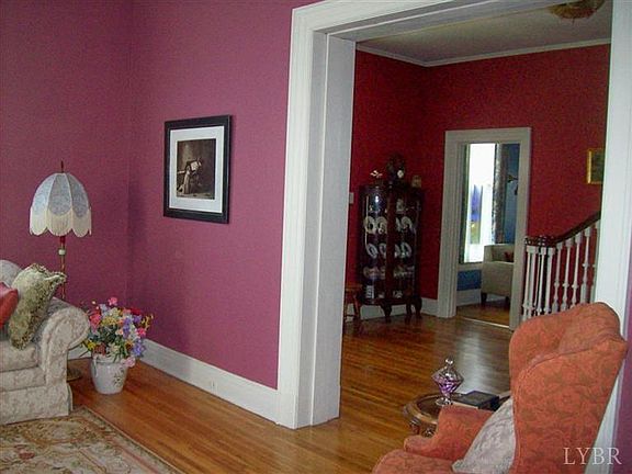 The N.B. Handy House**Circa 1897**Stucco frame Italianate mansion located in the Diamond Hill Historic District within walking distance to downtown Lynchburg, Virginia. Built circa 1897 and remodeled 1912. This home has been completely RESTORED. 5 Bedrooms, 3.5 Baths, original millwork, 10.5' ceiling downstairs & 10' upstairs. There are 5 fireplaces with ornate mantels. Grand entry with lovely staircase and an equally nice staircase in the rear entry hallway. Beautfiul French doors from library to 36 x 10 covered side veranda. Three sets of pocket doors in the main living area. Porches on three sides. Most original lighting fixtures. Large DETACHED TWO BAY GARAGE with main level efficiency apartment. All brick driveway with large parking area. Restored with new high efficiency two zone gas heat & central air. All new Pex Line plumbing. 200 Amps service. Fully insulated. Beautiful GOURMET KITCHEN with Kraft Made maple cabinetry with Silestone countertops. Appliances- stainless steel