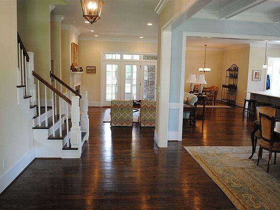 Built in 2014, this home and property is outstanding in every way. The first floor features 10' ceilings and hardwood floors and a very open floor plan. The master bedroom suite is in the main floor and has a coffered ceiling, his and her walk-in closets, and a gorgeous bathroom with marble floors, vanities, tile, and back-splashes. The kitchen has a huge marble island, granite counters, and a big breakfast area. It opens directly to the den that features a gas log fireplace and bookcases and has French doors leading to the screen porch. The formal dining room is quite big and also has a coffered ceiling. There's also a "cubbie" room with great storage between the kitchen and garage. The second floor has 3 bedrooms and 2 baths, and a media room/ play room, plus walk-in attic storage. The lot is approximately .7 acres, lush, private, fenced, and kid's dream!