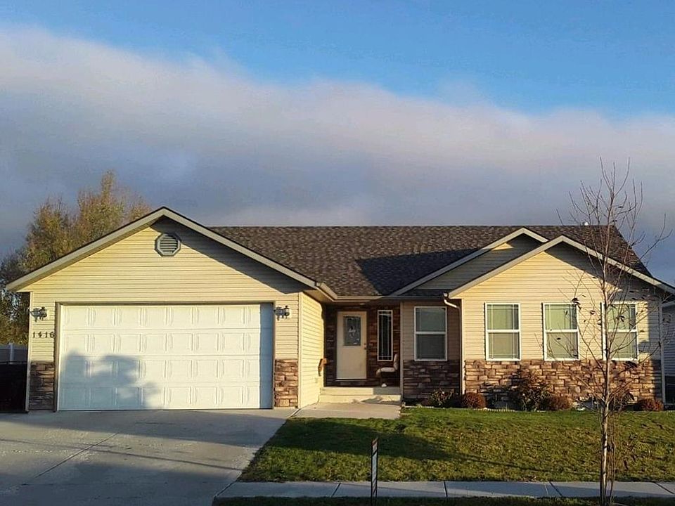 Nice 3 bedroom 2 bath home in Sunset West subdivision. Large open floor plan, vaulted ceilings, main floor master bedroom with a large master bath and lots of tile. Built in 2008 this home also has gas forced air heat with central air conditioning, pex plumbing pipe, full sprinkler system for the yard. Unfinished basement is framed for 3 more bedrooms, a full bath and a family room. More pictures will be added in a few days.