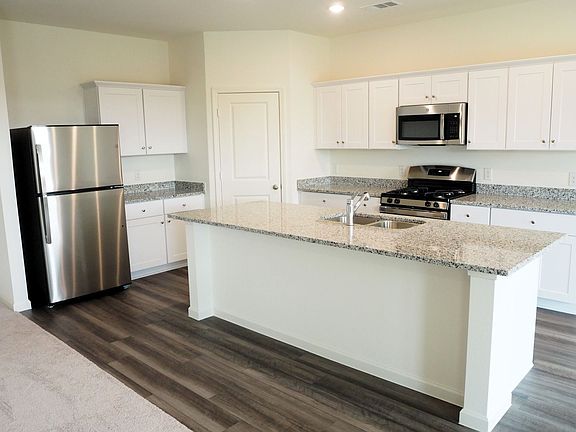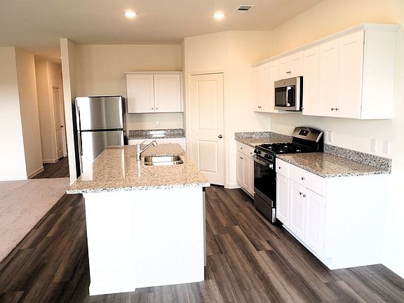 FIRST MONTH FREE RENT! This brand-new home offers modern comfort and a perfect location just south of Sherman TX, close to HWY 75 and only 3 miles to Texas Instruments and less than 1 minute to a highly rated elementary school. Home has 3 bedrooms, 2 bathrooms and a 2-car garage. The kitchen features granite countertop's, a gas stove and a huge island, perfect for entertaining. Backyard features a covered patio and plenty of room to relax and enjoy. The home also comes fully equipped with brand new washer, dryer, and refrigerator. Community pool and playground by end of year.