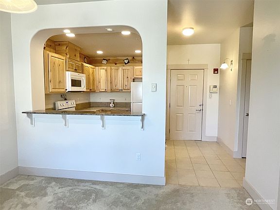 Luxurious Accessible Condo! This lovely 55+ Smoke-Free First Floor location is an easy stroll from the secure front entrance to your new home - a quiet unit with views of mountains from every window! Midday sunshine brightens the living room, piquing with gorgeous evening sunset views! Marvel at westerly views of Skagit Bay and the Olympic Mountains from the comfort of your sofa or expansive covered balcony! Kitchen w granite eat-in bar, primary bdrm w w closets, attached bath, & door to balcony! Handicap Accessible guest bath + Guest Bdrm w sliding door for more balcony time! New central water heater. Elevator to gated underground pkg w designated Handicap Accessible spc! Natural setting, trails, community room, convenient location.