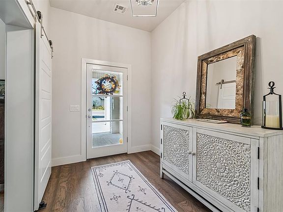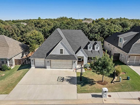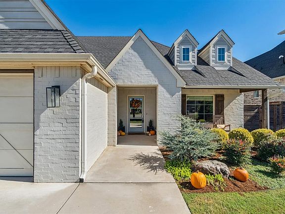 Discover this stunning home that perfectly blends natural beauty with refined design. Nestled on a serene, wooded lot in one of NE Edmond’s most sought-after locations, this residence lives and feels just like new. Step inside to find beautiful wood floors flowing throughout the open-concept living spaces. The spacious living room features a vaulted ceiling with exposed beams and a cozy ambiance ideal for entertaining or relaxing. A sliding barn door adds a touch of rustic charm while leading to a large, private home office—perfect for remote work or study. The gourmet kitchen impresses with a butler’s pantry complete with its own refrigerator, a large walk-in pantry, and plenty of workspace for the home chef. A thoughtful mudroom and a laundry room with a built-in sink offer everyday convenience. Outdoors, unwind beneath the covered patio featuring a built-in fireplace overlooking the peaceful trees beyond—your own private retreat. With a tankless hot water heater, quality finishes, and modern craftsmanship throughout, this home combines comfort, efficiency, and style in every detail. Experience the best of Edmond living in a neighborhood known for its beauty, amenities, and sense of community—this is truly a must-see property.