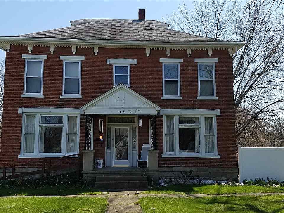Plenty of elbow room inside and outside this five bedroom, two bath home. Covered front porch leads to a spacious foyer. The hallway has lots of built in storage areas. Nice eat in kitchen with wood cabinets. Living room and front bedroom have hardwood floors under the carpeting. Wood deck off the kitchen. Main level bath has a walk in shower. Central Air new in 2013, Microwave new in 2014, Overhead garage door and garage entry door new in 2014. The upstairs has a separate entry and has been used as a two bedroom apartment, the eat in kitchen upstairs has an electric stove and refrigerator that stays. There is still access to the upstairs from the main level dining room. Nicely landscaped yard with mature trees and a wooded view. Basement is sectioned off into three rooms, there's a toilet in the laundry room, paneled family room, furnace room and all these rooms have lots of storage space. Refrigerator in garage stays. Besides having a large front and side yard, there's a huge lot behind the house for a garden, play area, etc. NIPSCO budget is $124.95