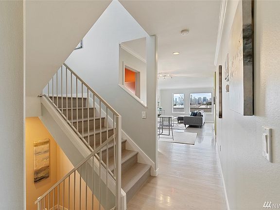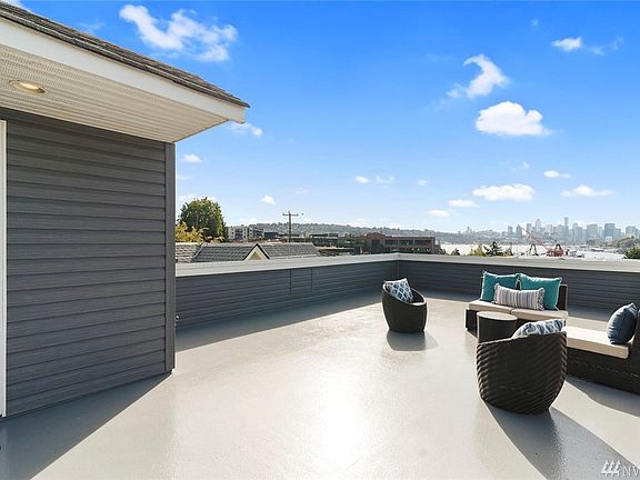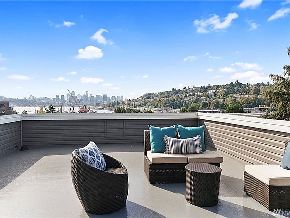 Elegant multi-level home w/truly sweeping views of city skyline & Lake Union! 3 flrs of luxurious living plus huge rooftop deck! Top flr totally renovated in 2012 incl'g colorful contemporary kitchen w/new SS appliances, custom oak flrs & new master bath. 2nd level has 3 BRs & big family rm w/fp & 2nd kitchen. Another bedroom suite w/kitchenette on the ground flr, plus laundry & entry to 2-car garage. Walk to shops, restaurants, Burke-Gilman, Gas Works Park, Fremont & much more (Walk Score: 86)!