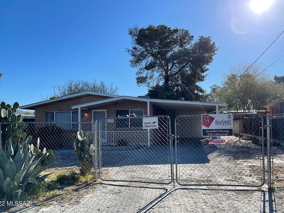 GREAT Location in central Tucson, close to and easy to go to everywhere including theUniversity of Arizona, the Tucson Medical Center! This unique 1961 brick home offers3BR/2BA, well maintained, new paint inside, great room concept and dining area. Largebackyard with a huge pine tree and activity space, low care landscape front and back.Storage room and laundry space detached, one car carport. Kitchen and bathrooms are aged but functional. This home is sold As Is.