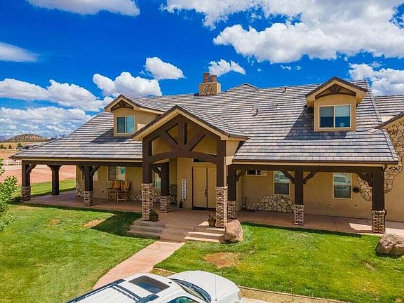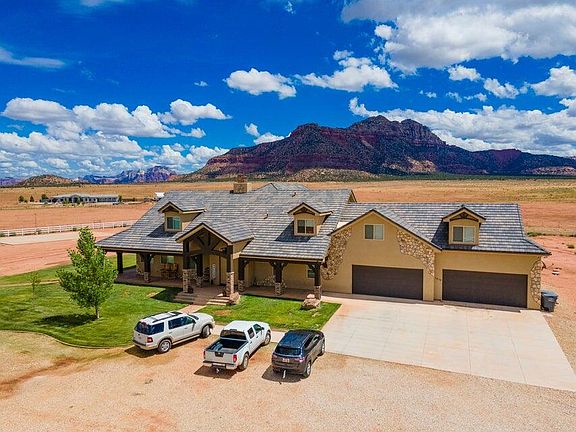 Stunning custom home that sits on over 3 acres with incredible views of Zion National Park! This estate has it all, with plenty of room for all the toys, horses, or a pool. Fine craftsmanship throughout and an open and inviting floor plan. Loaded with upgrades including central vac, granite counters, stainless appliances, generator, and 2 fireplaces. Massive bonus room above the garage as well.