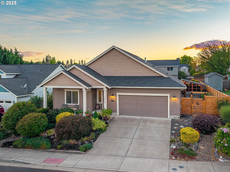 Vacation vibes, right in your own backyard! This home’s outdoor space is an entertainer’s dream — an expansive paver patio with a covered seating area, hot tub, ambient lighting, outdoor kitchen, and lush landscaped gardens that set the scene for unforgettable gatherings or peaceful evenings under the stars. Inside, the airy, open-concept layout flows effortlessly from the vaulted living room to the dining area and kitchen, where stainless steel appliances, granite counters, a pantry, and a center island with bar seating make cooking and entertaining a joy. A sliding glass door connects you directly to the patio for true indoor/outdoor living. The vaulted primary suite is a private retreat with its own slider to the backyard oasis, a spa-like bath with dual comfort-height sinks, a walk-in shower, and a generous walk-in closet. Every detail here is designed for comfort, style, and year-round enjoyment. If you’ve been dreaming of a home that feels like a getaway, this is it. Schedule your showing today!