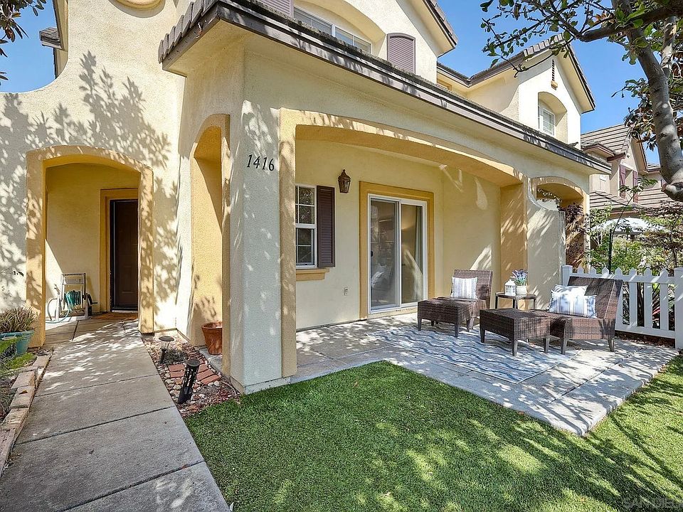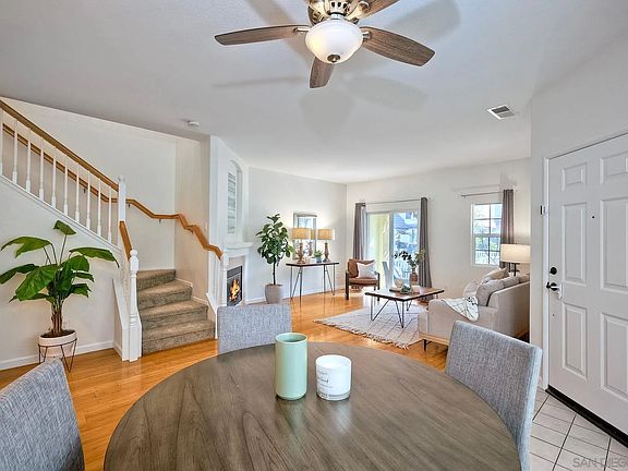 Discover this charming 3-bedroom, 2.5-bath twin home nestled in the highly sought-after Belleme Community of Otay Ranch. This 1,500 sq ft home offers an ideal blend of comfort and convenience, just a mile's walk or bike ride from Otay Ranch Town Center, where you can enjoy shopping, dining, and entertainment. The open floor plan welcomes you with bamboo flooring throughout the lower level, seamlessly connecting the living room, dining area, and kitchen. The kitchen boasts stainless steel appliances and a spacious