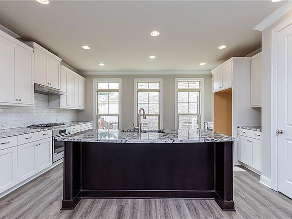 • Kitchen Features: Pantry, View to Family Room, Stone Counters, Kitchen Island, Cabinets Other, Cabinets White