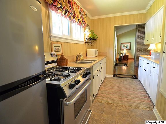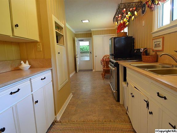 Call Rita Morrow Lake Guntersville Real Estate 256-505-2789. A Fisherman's Dream or Home Sweet Home? This 2BR / 1 Bath home will fit your needs. You can't beat the location conveniently located near Gunterville Lake, walking trail, ball parks, boat ramps, restaurants, shopping and schools. The house has a partial water view, large open family room with a gas log peninsula fireplace (3 sided), wood floors, central H/C unit, and all appliances to remain. The two car carport has room for your boat ! Not many great houses left in Guntersville at this price!