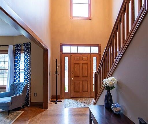 This spacious brick front colonial is nestled on a beautiful scenic wooded lot. A two story foyer welcomes you into this gracious home. The formal living room and dining room offer hardwood floors. An inviting family room is complimented with a gas log fireplace and newer carpet (10/19/20). The custom gourmet kitchen features cherry cabinets w/granite countertops, island breakfast bar and stainless steel appliances. The bay eating area has a slider that opens to an awesome deck with 3 sectioned seating areas and a firepit overlooking the woods. Double doors open to a deluxe owners suite that is complete with a glamour bath, Jack-n-Jill vanities and a large walk-in closet. A professionally finished walk-out lower level provides extra living space and includes a recreation area w/ granite countertops, wet bar, half bath plus an office with custom built-ins. Additional amenities of this great home are solid panel doors, hardwoods floors, 1st floor laundry and a mudroom off of the spacious 3 car heated garage. Newer roof 2018. Newer air conditioning 2018. water heater 2018. A must see!