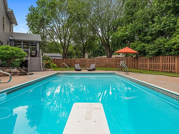What a great house to call home! Remodelled Kitchen, 30 x 18 Pool with a locking safety cover and diving board next to a Hot Tub, 3-season Porch, Cul De Sac Location, 10 x 12 Shed, Maint. Free Decking and Privacy Fence and much more!