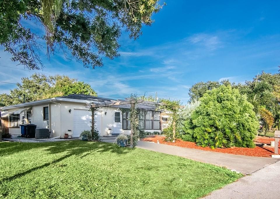 Clearwater - This SPOTLESS move-in condition 2 bedroom, 2 bath, 1 car garage, plus bonus room (currently 3rd bedroom) is centrally located. Enter to the open feel of the living room, dining room, and kitchen. The spacious kitchen has wood cabinets, updated appliances, and window overlooking the sprawling yard. The master suite has tile floors, a large closet, and a private bath. The master bath has an updated granite top vanity, retro tile, and walk-in shower. The second bedroom has tile floors, a large closet, and plenty of natural light. The hall bath has an updated vanity, retro tile, and large tub. The bonus room is currently used as a third bedroom but could also be an office, den or playroom. The front of the home has a spacious air-conditioned sunroom where you can enjoy the view of the beautiful Florida friendly landscaping in the front yard. You also can sit in either the enclosed 4-seasons room or the screened patio to enjoy the large fenced rear yard. Plenty of room for fun with family and friends. Located close to restaurants, shopping, and entertainment. Come take a look...You'll like what you see!
